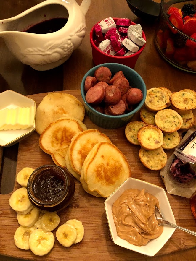 Hey friends! If you know me, you know I love cheese and charcuterie boards! But my friend recently sent me this article about pancake boards and I knew it would fit in perfectly with our galentine’s night.